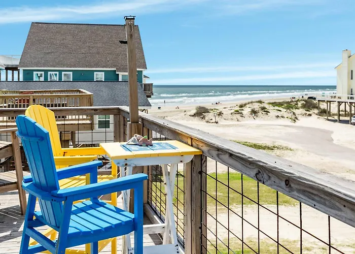 Die Villa Porch Paradise - 3 Beach & Water Views, Screened Porch! Freeport liegt in circa 25 Gehminuten Entfernung vom San Luis Beach und verfügt über eine Terrasse, von der aus man einen Küsten- Blick aufs Meer hat.